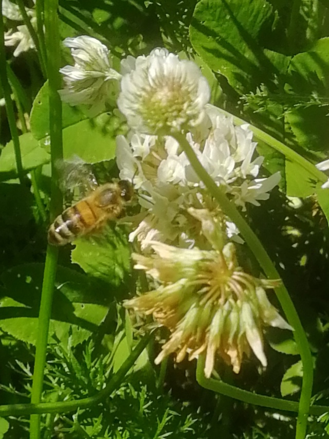 Valkoapila on mehiläisen suosikki Linkosimme ensimmäisen erän hunajaa, jotta saamme pesätornit vähän matalammiksi. Iso osa luonnonvaraisista kukkakasveista on jo kukkinut; vadelmakin on jo raakilevaiheessa. Pihan valkoapiloiden mesi maistuu mehiläisille.